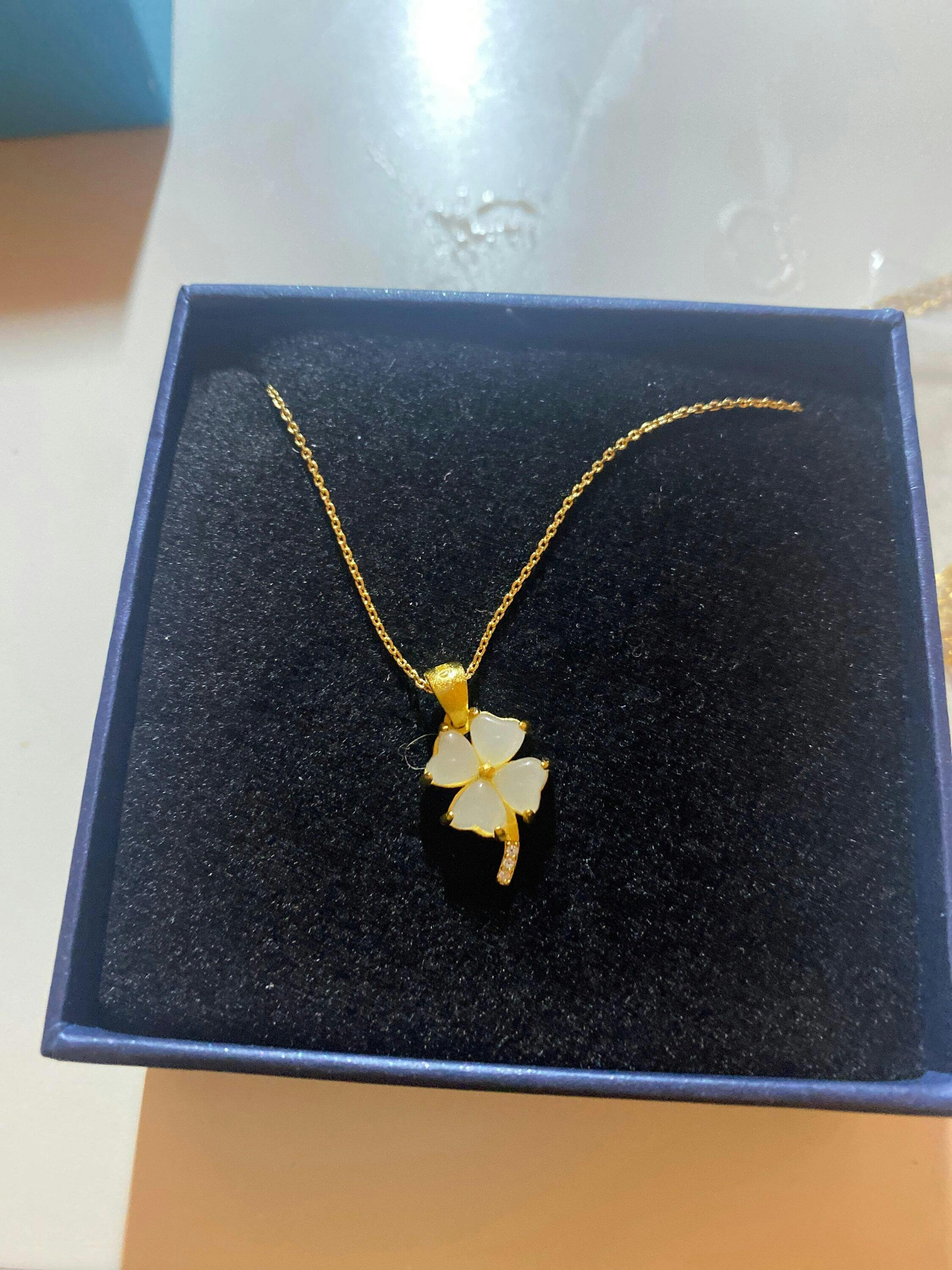 A piece of charming & cute white jade necklace, which is made with genuine 100% natural real white jades and 14k gold plated necklace. A great combination of modernness and elegance. The simple and lovely lucky clover design adds a spark to your daily wear or a bit of charm for your fun dating night. Perfect as a gift for your loved ones or yourself, and to wish them GOOD LUCK!